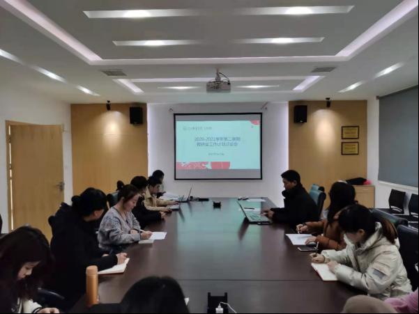 随后,4位教研室主任围绕课程建设、科研平台建设、人才培养、教师培训和专业建设等工作,依次向参会人员汇报了本学期的每周具体安排。语言文化教研室将依托“江右文化与人文素质教育研究中心”科研平台,坚持中国文化主体地位开展各项活动。除主抓《大学语文》《经典阅读与写作》课程建设外,还打算通过“创新杯”写作比赛、人文素质讲座、“双辛”辩论邀请赛等活动提升员工综合素质。外语教研室计划在已有精品课程建设基础上突破省级精品课程立项,针对目前员工需求较大的考研英语、雅思、服装英语等特色项目开展第二课堂教学教研活动。广告教研室就本科毕业设计、核心课程建设、实训与校企合作、赛事等工作汇报了本学期的教研室工作安排,提出了建党百年与专业课程思政相结合的观点,得到了与会教师的集体认可。新媒体教研室在专业新建和新进教师比较多的情况下,在新教师培训特别是科研能力的培训上着重加强了工作安排,拟将建校三十周年校庆活动和专业教学活动相结合,提出为校庆献礼的工作思路。