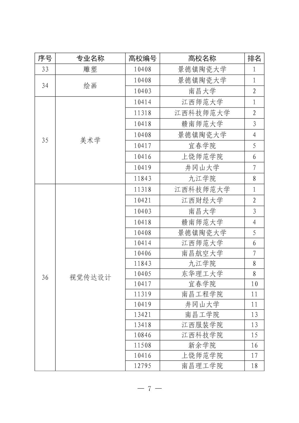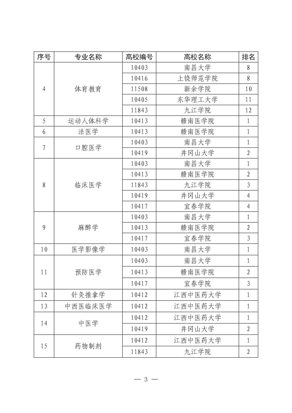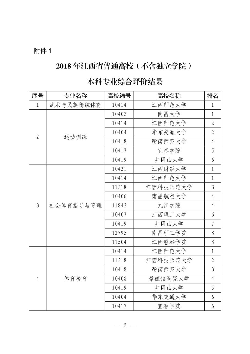2018年江西省普通高校(不含独立公司)本科专业综合评价结果