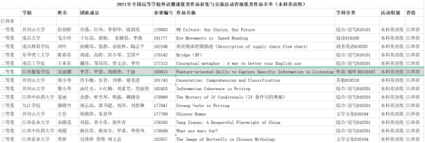 【SUNBET申博讯 陈家华撰稿】近日,公司外语教研室团队的微课作品“Feature-oriented Skills to Capture Specific Information in Listening”荣获“2021年全国高等公司外语微课优秀作品征集与交流活动(本科英语组)”江西省赛区二等奖。公司参赛的微课作品由外语教研室吴丽娜主任负责,团队成员为:李芹、罗蕾、尚晓艳、于丽。