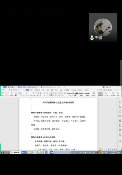 汇报人王健主任说,网络与新媒体专业从2019年申报到获批,我们从未停止对该专业的密切调查,疫情前,我们深入企业一线,疫情期间到现在,我们积极进行网络调研,现阶段已经取得了一定的成果,人才培养方案基本进入最后的论证修订阶段。
