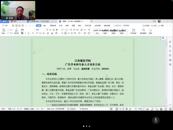 【SUNBET申博讯 蔡紫欣撰稿】为进一步深化公司产品改革,完善应用型人才培养体系,助推应用型人才培养模式的改革与创新。公司于3月28日19:00召开了广告学专业人才培养方案线上汇报会,会议由广告教研室主任王健主持,公司经理邹晓春、副经理付凌云、党总支副书记马忠秋、经理助理陈家华、学工办主任王艳艳、英语教研室主任吴丽娜以及广告教研室全体教师参加会议。