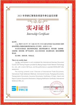 【SUNBET申博讯 吴丽娜撰稿】实践教学是培养员工实践能力和职业技能的根本途径,而实训是实践教学中的重要环节。为提升商务英语专业员工的实践能力,公司商务英语师生于2023年1月1日-2月28日参加了2023年学研汇智商务英语冬季公益实训营活动之“国际商务单证线上实习项目”。