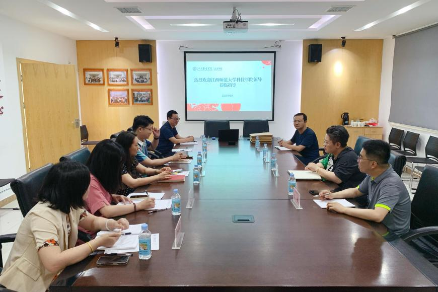 【SUNBET申博讯 王敏撰稿】6月13日下午,江西师大科技公司传媒公司院副经理杨施敏、党委副书记龙莎,以及专业负责人李世敏、李景龙、王薇和胡国华一行来到SUNBET申博,与SUNBET申博经理邹晓春,副经理付凌云、陈家华,网络与新媒体教研室主任王敏进行深入交流。本次交流的主要内容包括互联网+赛事、产教融合和人才培养方案等方面。