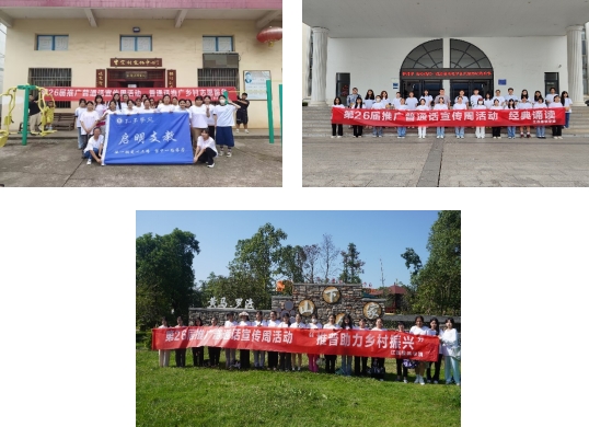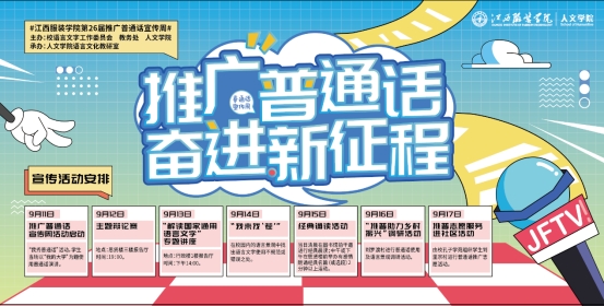 活动期间,推普志愿者深入广大师生,向他们介绍“推普周”的由来,宣讲语言文字方针政策,强化师生讲普通话写规范字的意识。 “我秀普通话”活动中,师生们用具有感染力的普通话讲述着自己与江服的情缘;主题辩论赛上,辩论双发唇枪舌战,用独有的方式展示了普通话和汉语的魅力;专题讲座中,主讲教师语言通俗易懂,为同学们普及了国家通用语言文字的相关知识;我来找‘茬’活动中,同学们开启“火眼金睛”模式,在校内语言景观中找茬,为提升校园文化环境贡献力量;经典诵读活动,同学们通过集体朗诵加个人朗诵的形式表达着自己对中华优秀传统文化的热爱以及对说好普通话的决心;“推普助力乡村振兴”活动中,师生走进了南昌县黄马乡罗渡村,实地调研了南昌县农村普通话使用和语言景观情况,并将撰写调研报告,理论联系实际,提升了实践能力;推普志愿服务进社区活动中,26名志愿者走进向塘镇里宗村启明书院进行普通话推广志愿服务,为村里的小朋友们种下了“说好普通话、写好规范汉字”的种子。