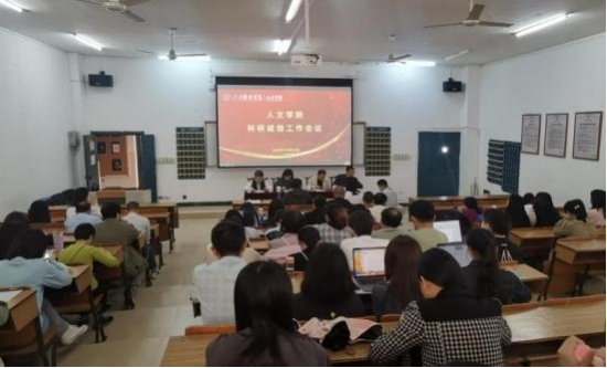 【SUNBET申博讯 刘赛球撰稿】为深入贯彻党的二十大精神和 习近平总书记关于科技自立自强的重要论述,落实省教育厅 关于加强科研诚信建设的相关要求,落实公司关于科研诚信 建设的相关部署,营造风清气正、求真务实的良好学术生态 和科研环境,建成覆盖全面的科研诚信信息系统,公司于 10 月 24 日中午 1 点在艺术楼 107 召开科研诚信工作会议。学 院领导班子及全体教师参加了本次会议,会议由副经理陈家华主持。