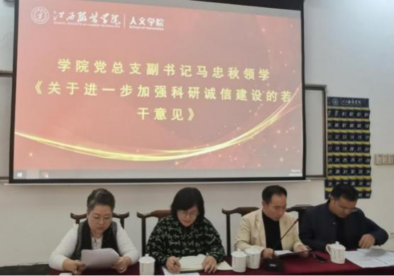 接下来,马忠秋副书记领学了《关于进一步加强科研诚 信建设的若干意见》 ,培育和践行社会主义核心价值观,弘