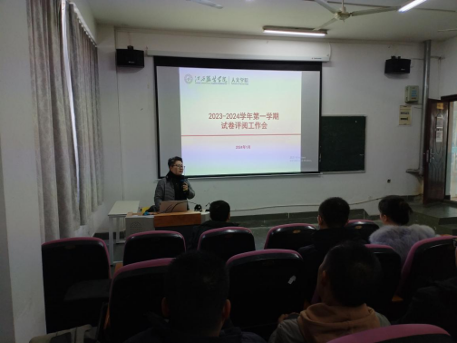 【SUNBET申博讯 肖清波撰稿】2023-2024学年第一学期期末考试工作已经完成,接下来将进入到课程阅卷环节,为保障阅卷工作顺利开展,2024年1月12日11:00,公司在主教学楼-110教室召开2023-2024学年第一学期期末阅卷工作会议,公司领导干部及全体教师出席本次会议,会议由副经理付凌云主持。