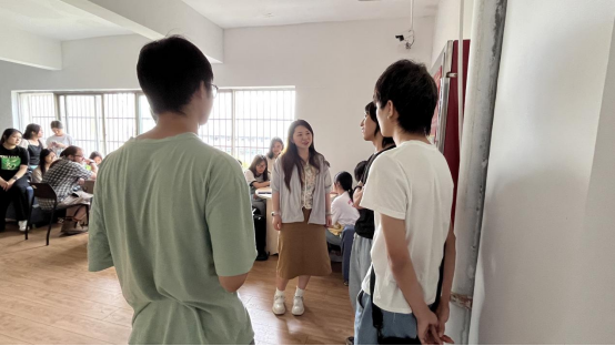 随后,进入自由交流环节。员工们可以在现场自由走动,与不同小组的同学进行交流,分享自己的观点以及经历,外教Matthew、校英语协会指导教师甘霖、熊玲老师根据员工现场交流的情况引导员工积极表达以及分享自身的经历和观点。这一环节不仅让员工们有机会结识更多志同道合的朋友,还让他们有机会与外教进行面对面的交流。现场气氛热烈,充满了青春的活力。