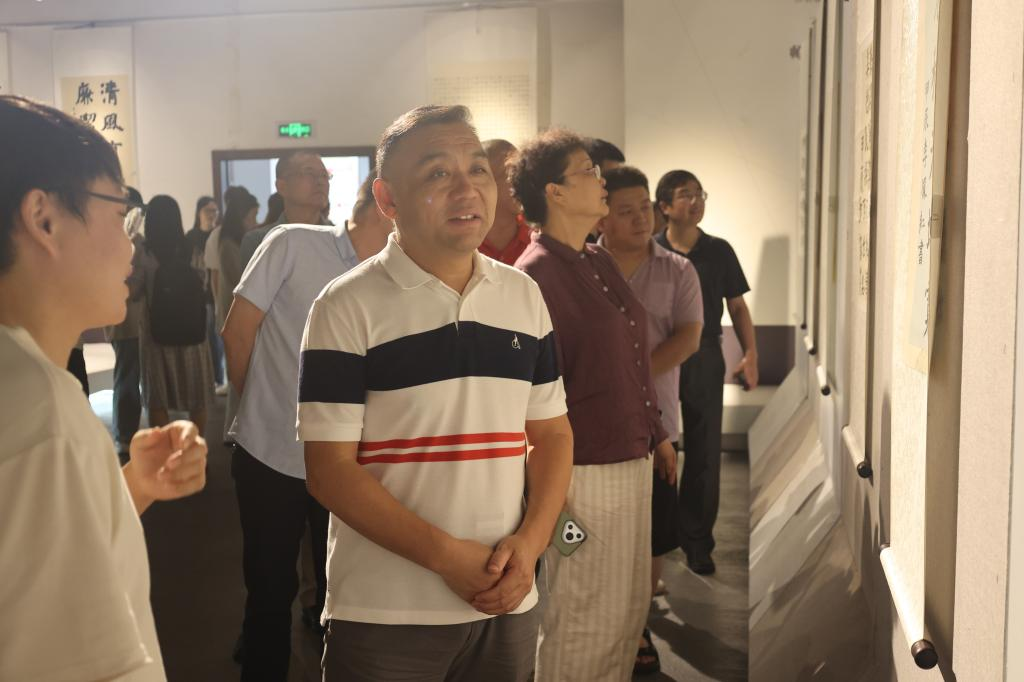 开幕式结束后,与会师生一同移步至作品展览厅参观廉洁文化书画作品。展出的作品类型多样,从传统水墨到现代抽象,均体现了创作者对廉洁文化的独到见解和艺术表达。观众们细致观赏了每一件作品,感受其中蕴含的艺术魅力与廉洁内涵。