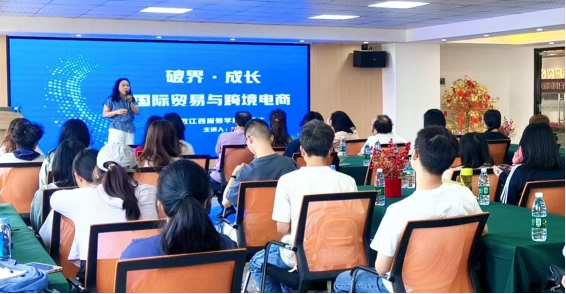 在“破界·成长——国际贸易与跨境电商”主题交流会上,江西省跨境电商协会Mia老师围绕跨境电商运营模式、市场拓展、风险应对等关键领域进行深入剖析。Mia老师结合实际案例,从产品选品、店铺运营到国际物流、跨境支付,全方位讲解跨境电商业务流程,还分享了行业最新动态和发展趋势。师生们认真聆听,积极提问,现场互动频繁,学习氛围热烈。