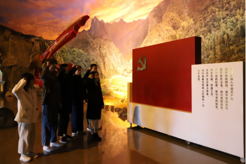 参观结束后,公司员工党支部书记王艳艳带领党员重温入党誓词。她指出:此次实践教育活动意义深远,不仅让全体党建成员更好的了解了红色文化,重温了那段炮火纷飞的革命岁月,同时让同学们又一次接受了来自红土地上的“红色洗礼”,更有利于同学提高自身文化素养,坚定了努力学习的动力,积极投身于实现“中国梦”的伟大征程。