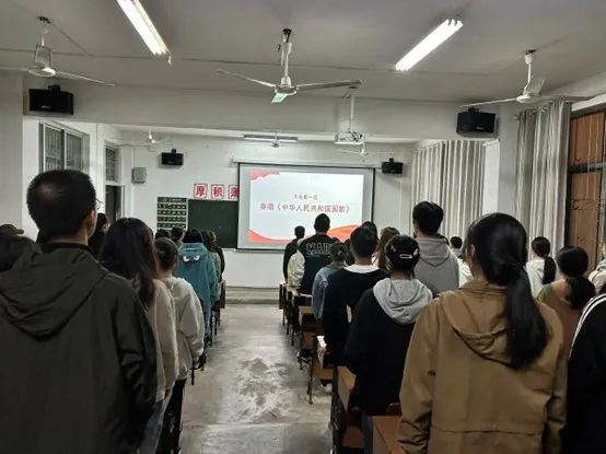 仪式第一项,由主持人带领全体人员庄严奏唱《中华人民共和国国歌》。