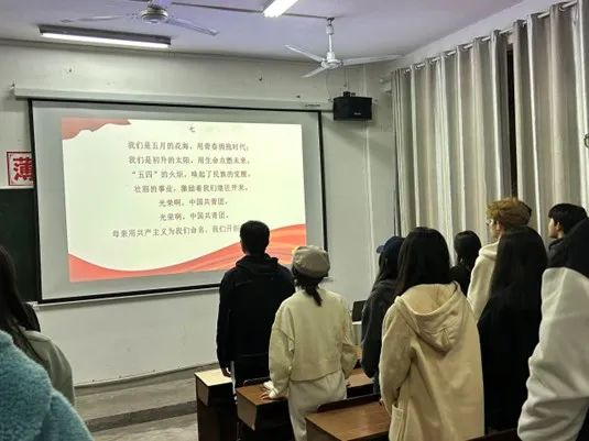 仪式第七项,全体起立,齐唱中国共青团团歌。