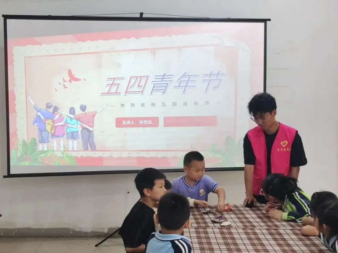 活动伊始,志愿者通过讲解让孩子们了解到五一是全世界所有爱劳动的人们共同庆祝的节日。而后志愿者们通过知识宣讲等多种形式,带领孩子们了解学习五四精神,弘扬爱国主义精神。