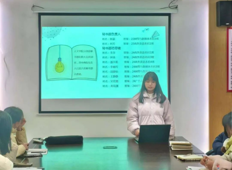 会议伊始,各部门进行述职。维权服务部的同学们深入员工群体,如同贴心的守护者,收集并解决了关于校园设施与生活服务的反馈建议,无论是宿舍设施的修缮,还是食堂菜品的优化,他们都事无巨细,切实维护了同学们的权益,让校园生活更加温馨舒适。宣传部展示了精心制作的推文和多篇报道阅读量,有效提升了活动影响力;秘书部收集学分置换表,为同学们的第二课堂保驾护航;办公室部门撰写新闻稿和公众号的汇编能够及时、准确地向师生传递校园内的资讯,让大家第一时间了解校园大小事。每个部门都进行了部门简介,活动回顾,存在的不足和对未来的展望的四个方面汇报内容。