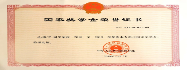 近日,国家奖学金和国家励志奖学金获得者们的荣誉证书已打印好,并发到高校了,今年虽然因为疫情原因,我们的获得者们不能第一时间拿到,但是有爱的老师们已经为我们发布上线了。以下是公司2018-2019学年获得国家奖学金和国家励志奖学金获得者们的风采吧!