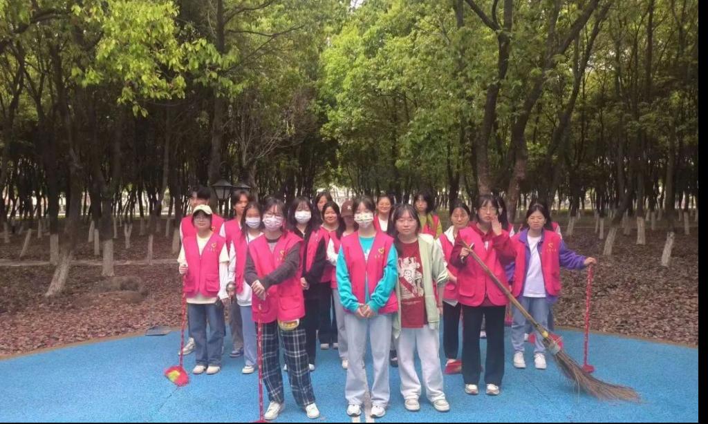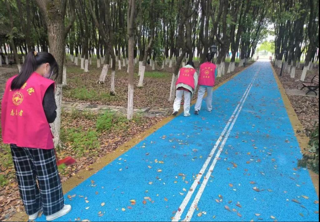 活动中,身穿粉色志愿服的志愿者对绿化区进行彻底打扫,他们拿着扫帚认真打扫过道两旁的落叶和纸屑,将易被忽视的花丛和树丛中的矿泉水瓶、纸屑扫起。打扫虽然辛苦,但志愿者们不怕脏不怕累,经过一个多小时的劳动,终于将过道两旁的绿化带清理完毕,周围环境焕然一新。活动结束后,志愿者们与同学们在绿化区合影留念。