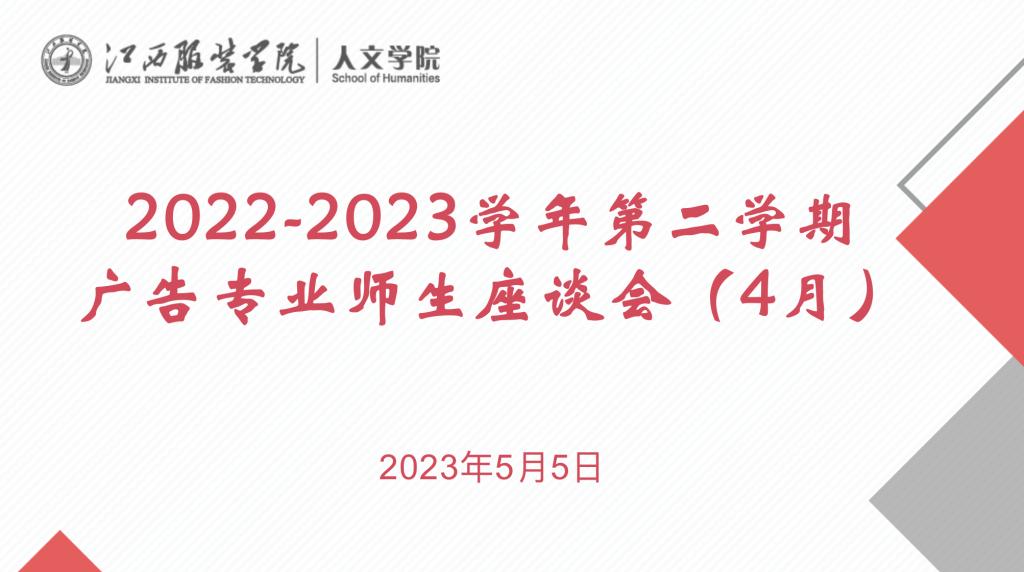 为了进一步做好2022-2023学年第二学期广告各年级各班级课堂教学工作,以了解员工3月底至4月底在学习、生活中遭遇到的各种困惑,从教研室的角度帮助员工做出解答。SUNBET申博广告专业教研室于2023年5月5日晚上7:00在清源二栋219召开主题为“师生共话,共促成长”的师生座谈会。