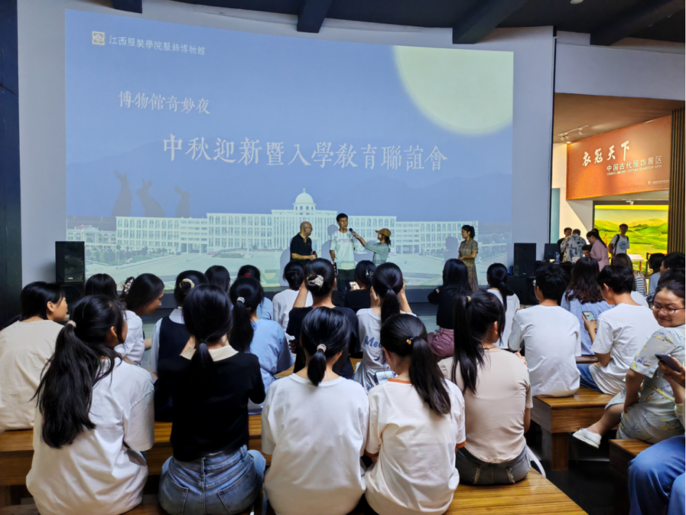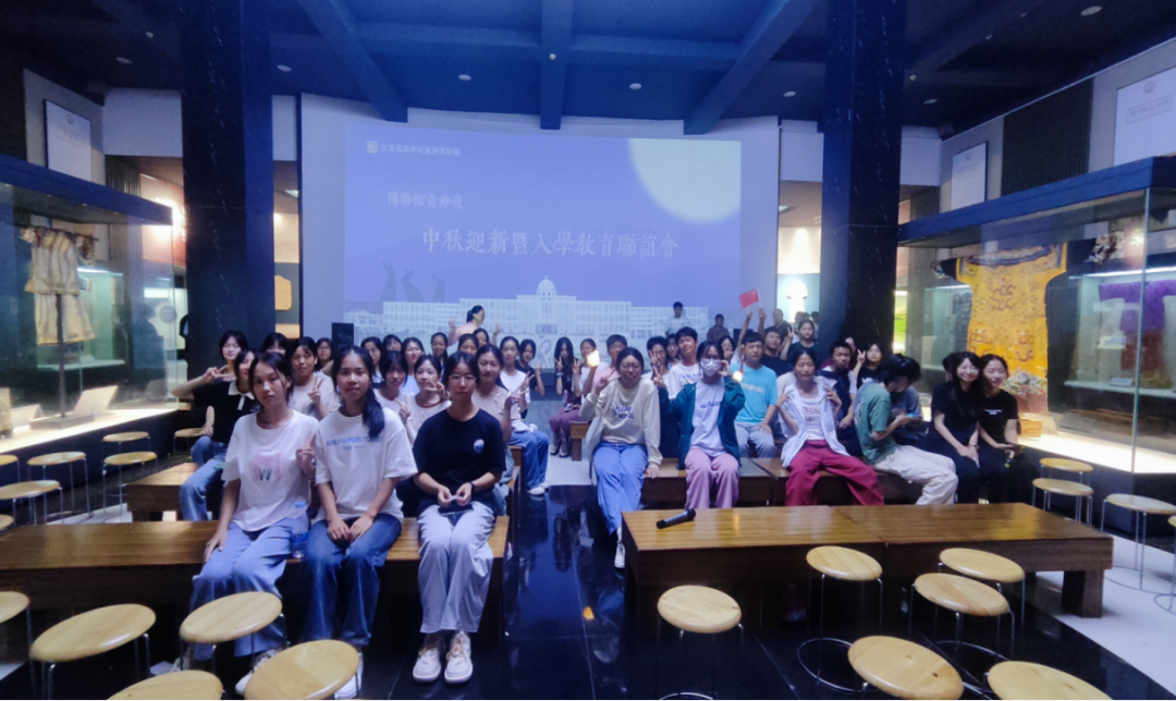 2023年9月27日晚6:00-8:00,博物馆奇妙夜之“中秋迎新暨入学教育”联谊会活动在中华服饰博物馆圆满举行。本次活动由学工处、党委宣传部、服饰博物馆主办,孔子学苑、非遗工坊协会协办,150名新生以及其他自主报名的员工积极参与。