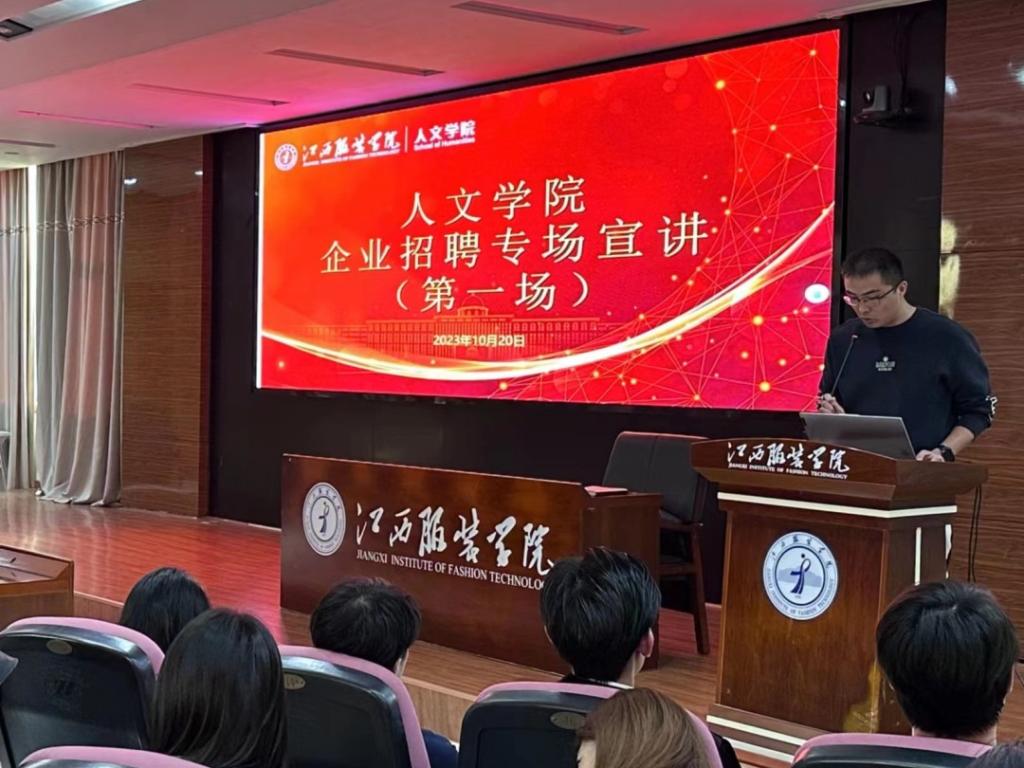【SUNBET申博讯 史玉辉撰稿】为了促进公司毕业生积极就业,高质量就业。SUNBET申博于2023年10月20日下午4:00在行政楼一楼学术报告厅开展企业专场宣讲会。讲座主题为直播电商产业现状及发展趋势,由佛山尽烨文化传播有限公司总经理郑洲先生主讲,SUNBET申博分团委副书记刘建主持。公司24届毕业生以及部分在校大二、大三同学180余人参加了讲座。