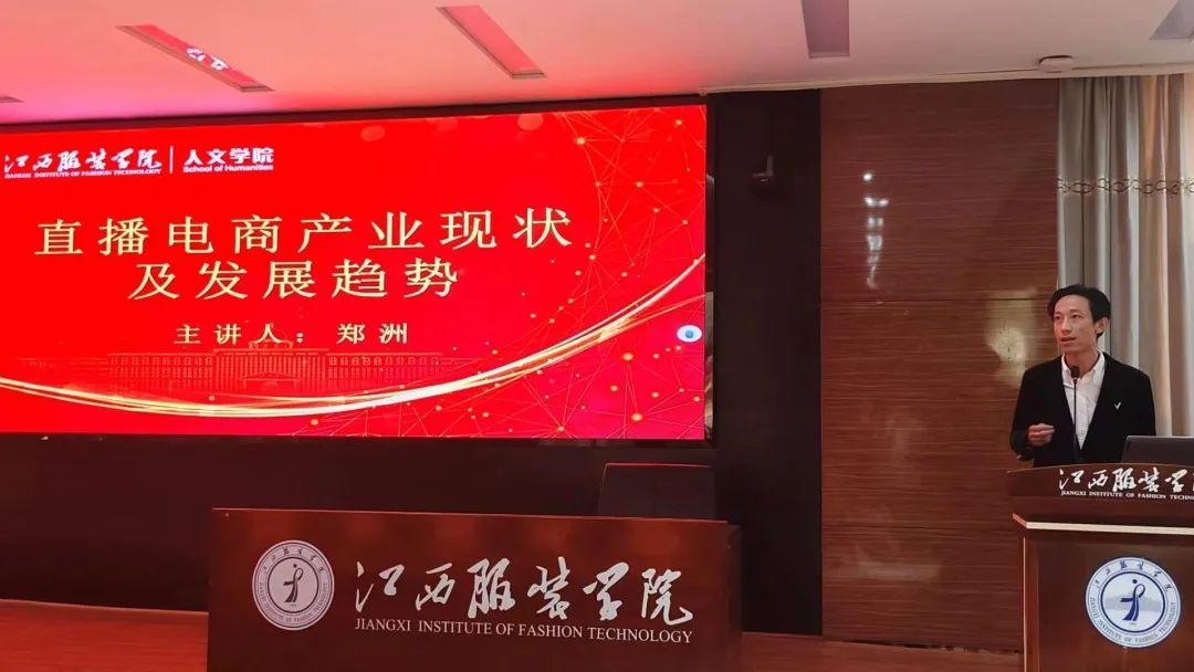 接着,郑洲先生上台为我们分析当前社会直播电商产业的现状和发展趋势,分享了佛山尽烨文化传播有限公司在电商领域的优势项目,分别从人员构成、直播思路、产业布局等多个方面进行分析。郑洲先生指出了当前老员工从事电商直播领域经验不足,没有资源支持等问题,公司希望青年老员工的加入。这是一个促进老员工实习就业率提高的好机会,有利于实现企业与应届生共同发展。
