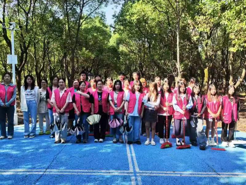 活动开始前同学们整合列队以2~3人为一组,由负责人分配任务,有序领取清扫工具后到达各自的包干区进行清扫工作。同学们积极努力、认真负责地打扫着树林间的枯枝落叶和林间小道上的垃圾。在美化校园环境的同时也令红色马甲成为一道“靓丽的风景线”。