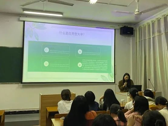 这次讲座主要分为五个部分,分别是“什么是应用型大学”“学业发展管理”“处分的种类与应用”“奖励资助”“员工提问环节”。