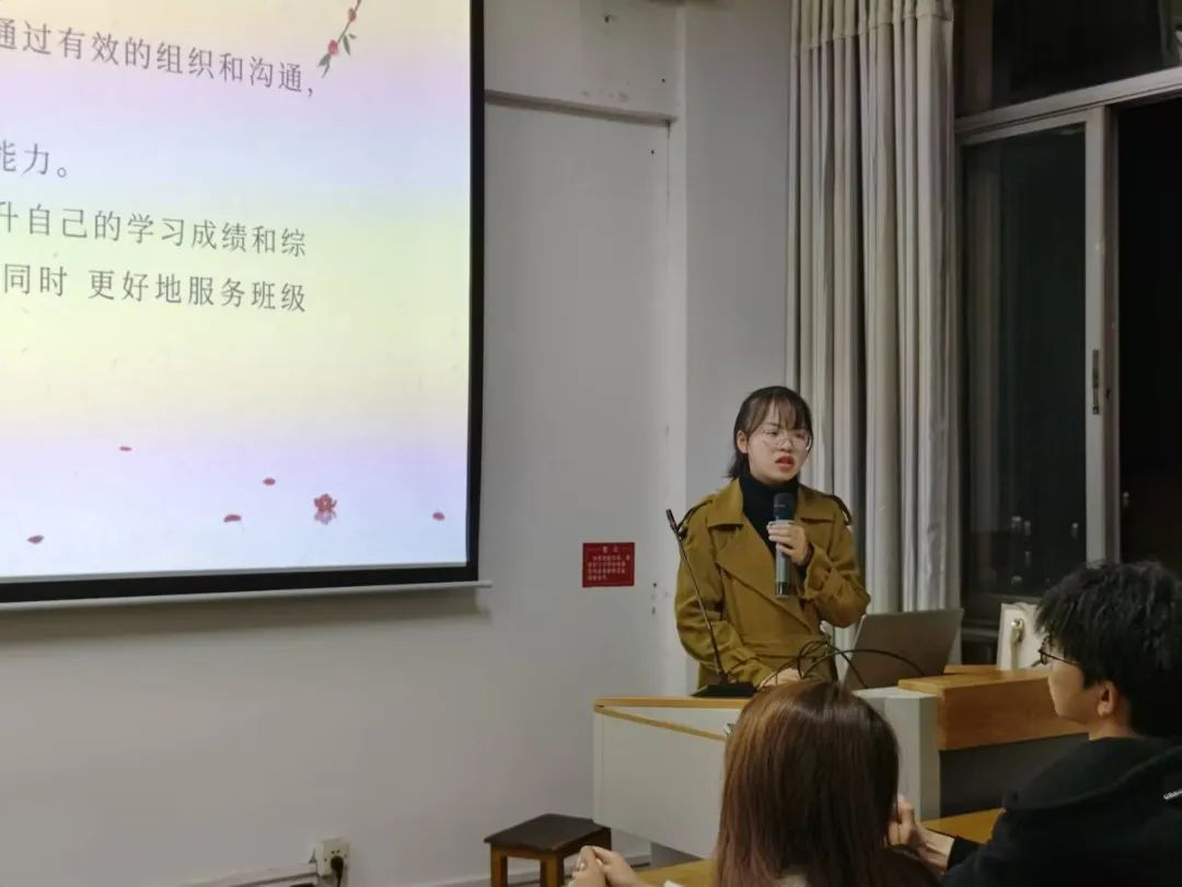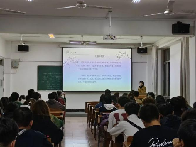 讲座开始,主讲人罗红婷老师首先带大家回顾了班长的责任和目标。她提到,一方面,班长的基本职责是负责日常各方面的班级管理,包括协调配合卫生、纪律、体育、生活等委员管理。其他常规的任务,如每周的班会,班级管理记录本的填写也需要班长认真负责的处理好。与此同时,班长需动员组织同学积极参与各类院校活动并与老师做好沟通。
