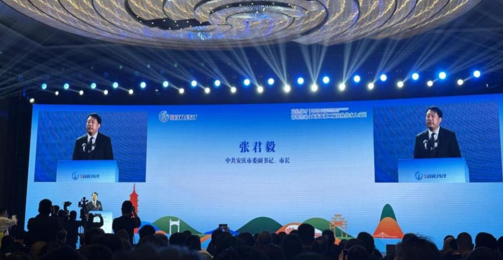 在安庆市城市与人才宣传片《再望安庆 才创未来》的播放中,拉开了本次人才周序幕。人才周启动仪式上,市长张君毅出席了本次活动并致开幕辞。张市长首先代表市委、市政府,向与会代表表示热烈欢迎,向长期支持安庆经济发展的社会各界人士表示由衷地感谢。他表示,举办第二届人才周活动,既是贯彻党的二十大精神,推动新时代区域性人才强市建设的实际行动,也是落实人才兴皖工程和“人才安徽行”活动部署要求的必要之举,更是提升城市影响力和人才吸引力的关键之法。安庆位于安徽省西南部,长江下游北岸,皖河入江处,产业发展基础雄厚,是联动长三角和中部地区的区域重点城市,全国重要的粮棉油、水产品、林产品和畜禽生产基地,2016年5月被列入长三角城市群。长三角一体化发展、长江经济带发展、“一带一路”共建等重大国家发展战略在此处交汇,带来前所未有的发展机遇,发展质量不断提升。