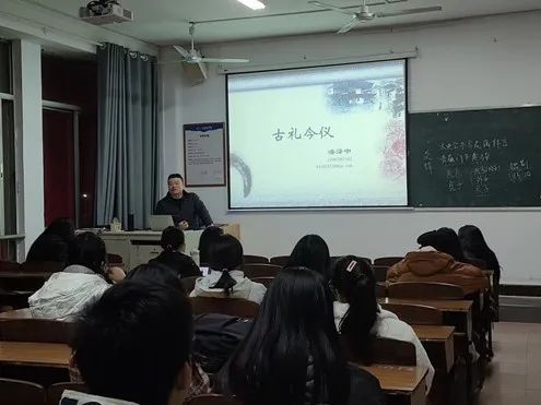潘老师在宣讲的过程中大量引用《论语》中有关“礼”“敬”“仁”的名句来增强大家对个人礼仪修养的理解,同时列举生活中的多个例子来证明礼仪修养的重要性,并教育我们在日常生活中要注意使用敬称和尊称,多使用“您”“请”等敬语来表示对长者和德高望重之人的敬意。作为泱泱华夏的当代青年,我们在待人之道上也借鉴了古人的风姿:面对长者时,正衣冠,戴礼帽,讲敬语,行走时礼让半个身位,呈现尊重姿态;面对贤者时,虚心请教,举止有礼;面对平辈时,态度谦虚有礼,和睦友善,在古礼的熏陶下,我们知礼重礼,传承中华美德。
