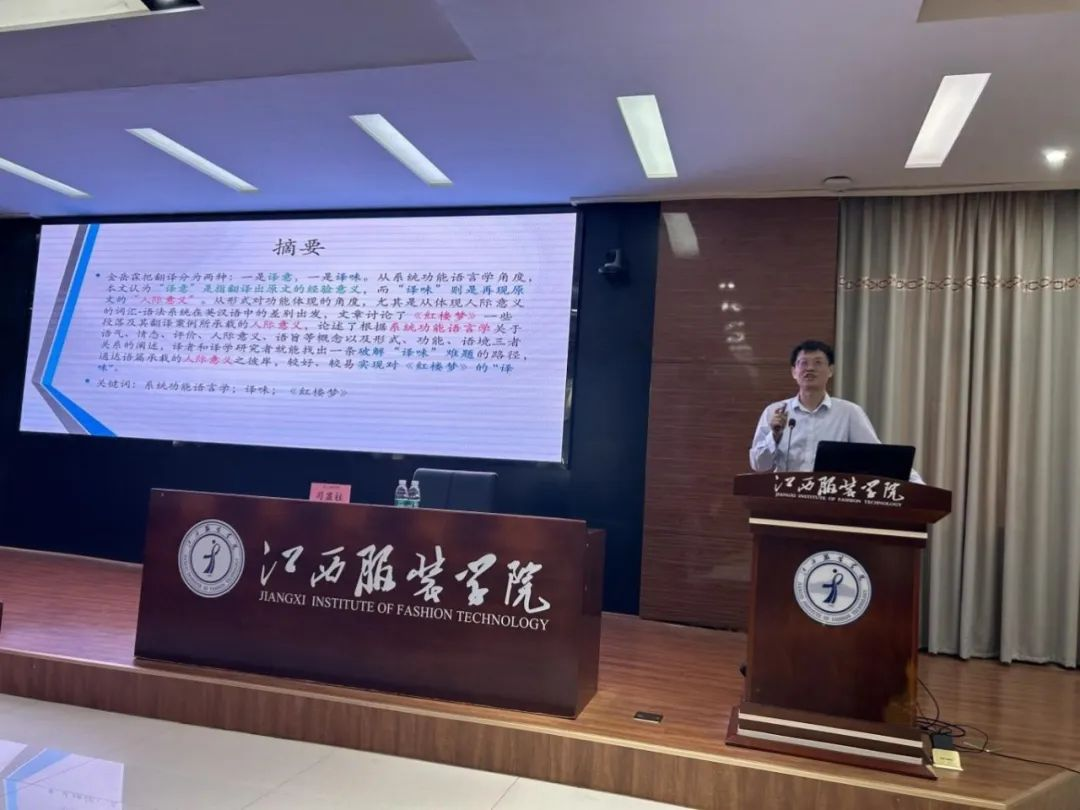 【SUNBET申博讯 宋靖怡撰稿】为进一步提升我院商务英语专业师生的翻译素养和学术水平,推进一流课程和专业建设,践行应用型翻译团队和人才培养,2024年4月28日下午,公司特邀北京第二外国语公司司显柱教授在行政楼一楼报告厅作题为《从系统功能语言学的视角论“红楼梦”的译味》的学术讲座。公司科技产业处副处长曾剑平、SUNBET申博经理邹晓春、副经理陈家华、商务英语教研室全体教师及商务英语专业员工共180余人聆听了此次讲座。讲座由SUNBET申博副经理陈家华主持讲座。