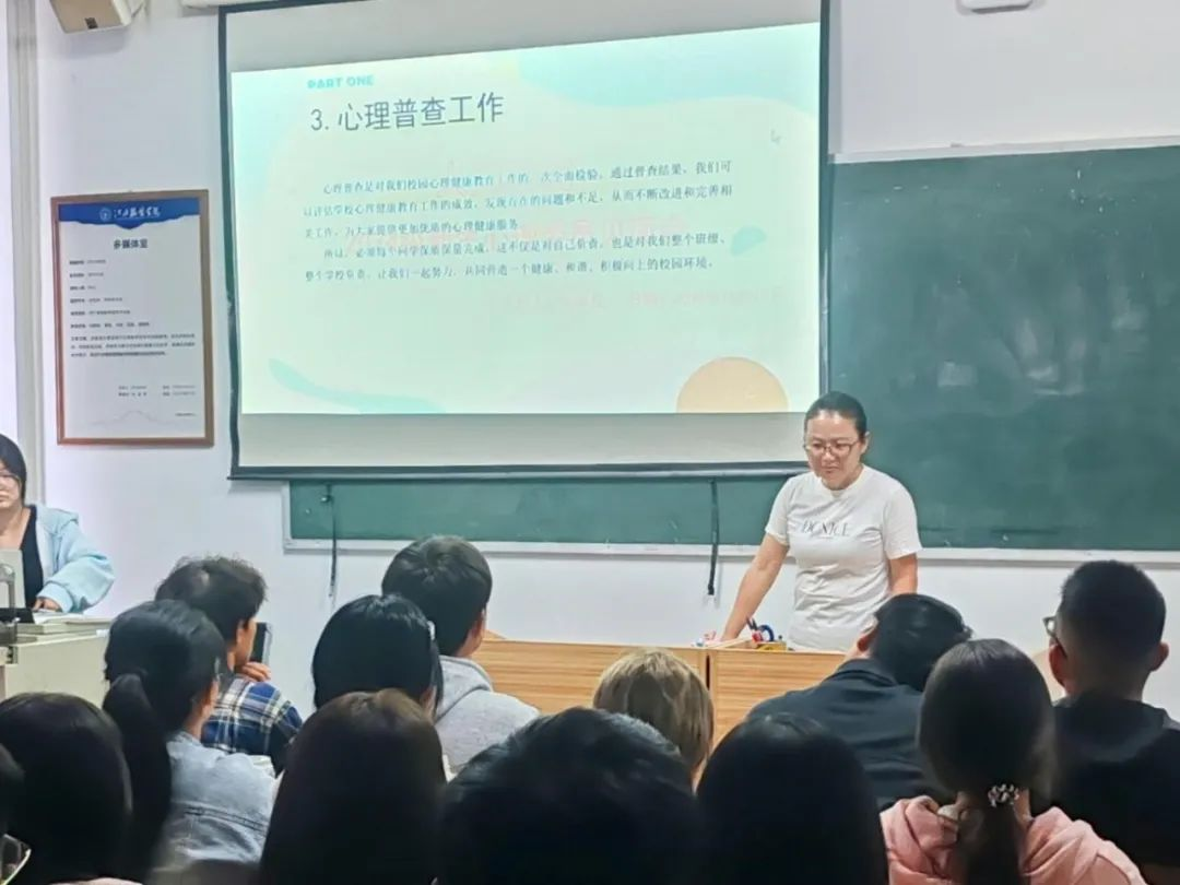 最后,栾老师介绍到心理普查工作,她讲到,通过心理普查工作我们能更好地开展心理健康教育工作,为大家提供更优更完善的心理服务。因此,让我们携起手来共同建设一个健康积极向上的校园。