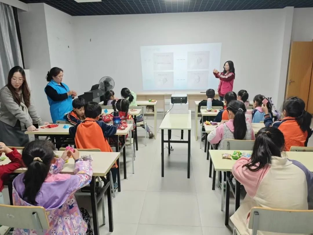 活动伊始,志愿者们通过分发小礼品点燃了现场的气氛,孩子们的脸上洋溢着纯真的笑容,整个场地沉浸在一片欢快的氛围里。随后,进入了精彩纷呈的教学环节。志愿者们以有趣的谜语被巧妙地引入,开启了灯笼折纸的教学。孩子们瞪大眼睛,全神贯注地跟着志愿者们的步骤,小手不停地摆弄着彩纸,一步步将手中的材料变成了一个个漂亮的纸灯笼,就如同那句名言所说:“兴趣是最好的老师”,孩子们在这趣味的引导下,热情高涨地投入到手工创作中。