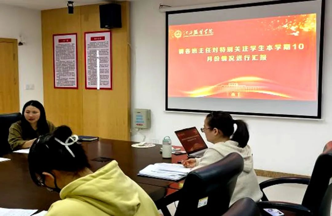 接着,各班班主任老师对特别关注员工近期学习、生活、思想状态等情况进行逐一汇报。期间,心理健康咨询中心曹昊老师和程欢欢老师认真听取老师们的汇报,并不时针对具体情况提出专业的帮扶意见。