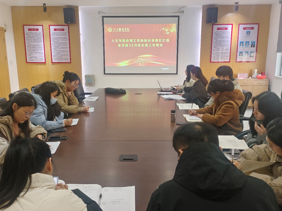 会议伊始,由心理工作站站长栾翠红老师对本学期12月份心理工作情况进行了汇报与总结,本月心理工作主要围绕员工心理情景剧的推进、心理委员例会的召开、心理户外活动的参与等方面展开。通过一系列工作的开展,员工心理健康状况得到了显著改善,心理健康意识得到了提升。