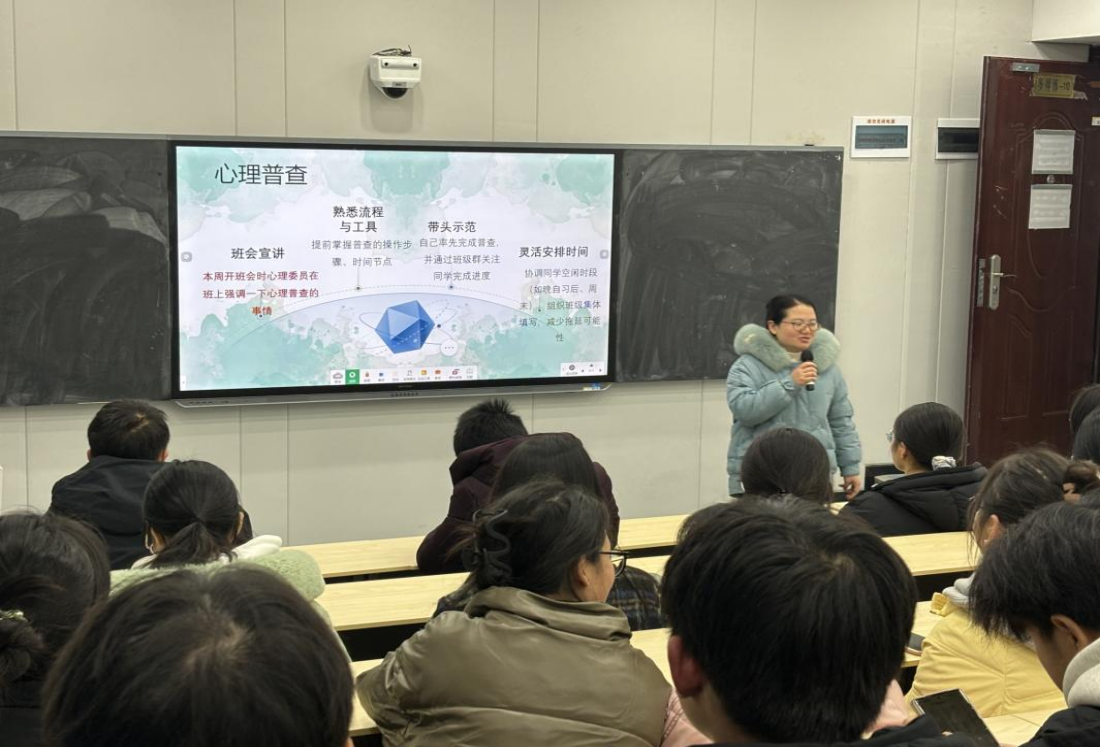 接下来栾翠红老师也讲解了详细的流程,教导各班心理委员该如何顺利开展工作,并表示心理普查旨在了解员工心理状况,能使个体及时发现可能存在的心理问题倾向,如在焦虑、抑郁等情绪初现端倪时有所察觉,以便主动寻求帮助和干预,防止问题恶化,再提供针对性的心理服务,帮助同学们健康成长。