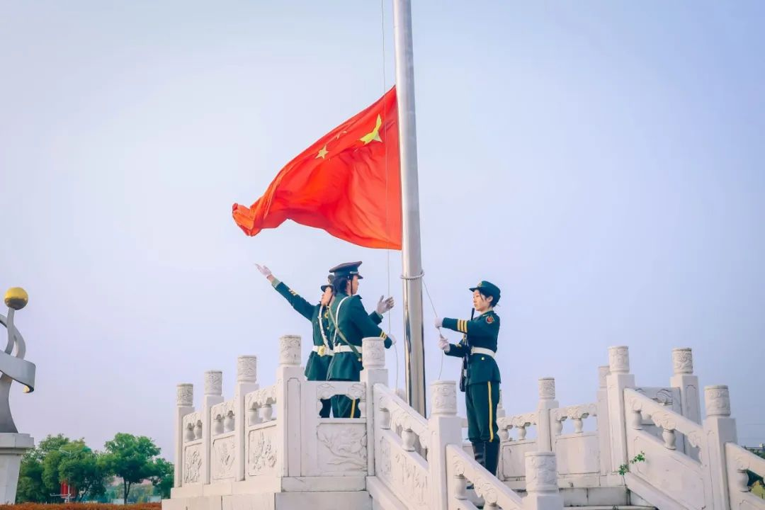 朝阳初升,随着激昂的国歌声响起,校护卫队的升旗手身姿挺拔,动作娴熟而庄重,每一个步骤、每一次抬手,都倾注着他们对国旗深深的敬意。全体师生饱含热情的目视前方,庄严肃立,在雄壮的国歌声中,注视着五星红旗冉冉升起,在早晨的微风中缓缓飘扬。