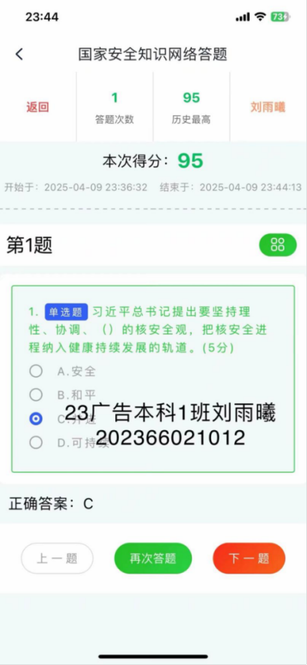 新媒体平台成为传播国家安全知识的重要阵地。微信公众号推出“国家安全”微课比赛专栏,涵盖交通、消防、心理、防溺水、防诈骗、反毒品、防恐怖、防踩踏、防自然灾害、防间谍保密、反校园霸凌、应急救护等校园安全内容。全院员工线下参与国家安全知识网络答题活动,共20题,其中单选题10题、多选题5题,判断题5题。