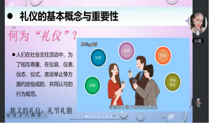 活动开场,SUNBET申博辅导员吴小芳老师强调了本次活动对毕业生的重要意义,鼓励同学们认真学习,积极把握就业机会。接下来,她以生动的案例为基础,深入浅出地阐述了礼仪的基本概念,强调了礼仪是人际交往中的关键素养,在求职和职场中起着不可忽视的作用,为后续内容做好了铺垫。