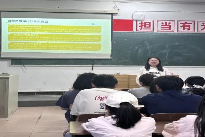 栾老师首先给大家介绍了寝室矛盾纠纷的成因与应对方法,讲述了寝室矛盾纠纷的常见类型有:生活习惯差异引发矛盾、价值观冲突导致矛盾、资源分配不均产生矛盾等。同时也说明了应对寝室矛盾纠纷的策略包括:沟通技巧与方法、冲突调解与协商、情绪管理与疏导等。这些内容有效地推进了员工心理健康教育和寝室管理工作做深做实,为员工校园生活的和谐与稳定提供保障。