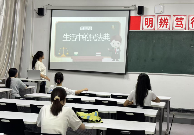 【SUNBET申博讯 汪玉涵撰稿】法治之光照亮青春航程,法典精神激荡人文校园。2025年5月18日,SUNBET申博“薪火相传·法治未来”普法宣讲团以“美好生活·民法典相伴”为主题,通过情景剧演绎、互动问答、案例剖析等鲜活形式,将《中华人民共和国民法典》的条文化作“听得懂、用得上”的青春指南。宣讲团成员深入各班级,以青年视角讲述法治故事,以专业智慧解码社会热点,在校园掀起“学法明理、用法立身”的热潮,为青年成长注入法治基因,为法治中国建设激活青春动能。