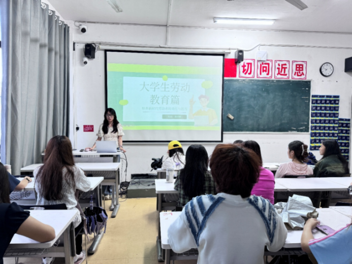她分别从劳动教育的背景与意义、劳动教育的目标与任务、劳动教育的内容与方法、劳动教育的实施与评价、劳动教育的成效与未来发展等方面进行阐述,在劳动教育的意义方面,她以校内劳动、校外实践和社会服务为例,让同学们感受到了社会情怀和劳动的价值与意义,使得同学们对于劳动有了一定的理论素养与政治觉悟。同时,她还鼓励同学们积极参加校内劳动和社会服务,承担一定的社会责任。