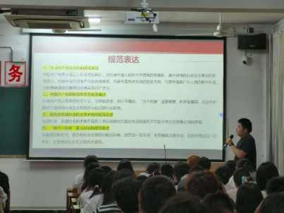 讲座伊始,教室内座无虚席,新生们挺直腰背、目光专注,期待着这场思想盛宴。计老师以党的基本理论为切入点,结合百年党史中的鲜活案例,生动勾勒出党的发展脉络与辉煌成就。她的讲述饱含深情,新生们时而屏息聆听,时而点头共鸣,真切感受到“为中国人民谋幸福、为中华民族谋复兴”的初心使命是贯穿百年的坚定行动。