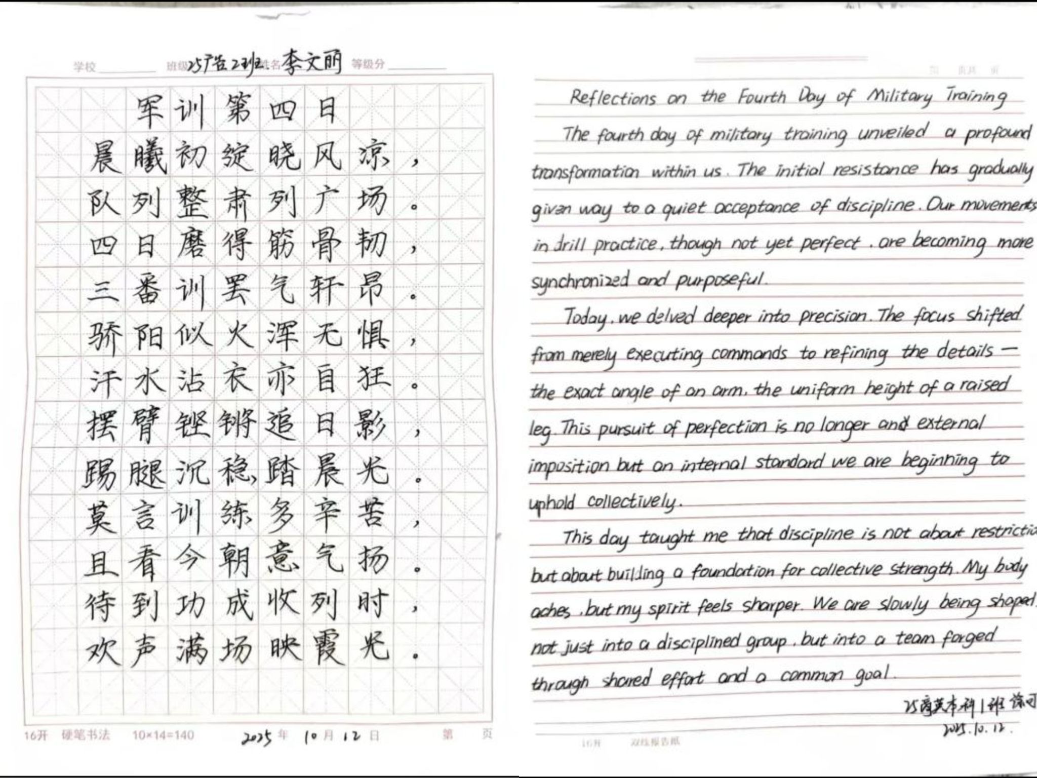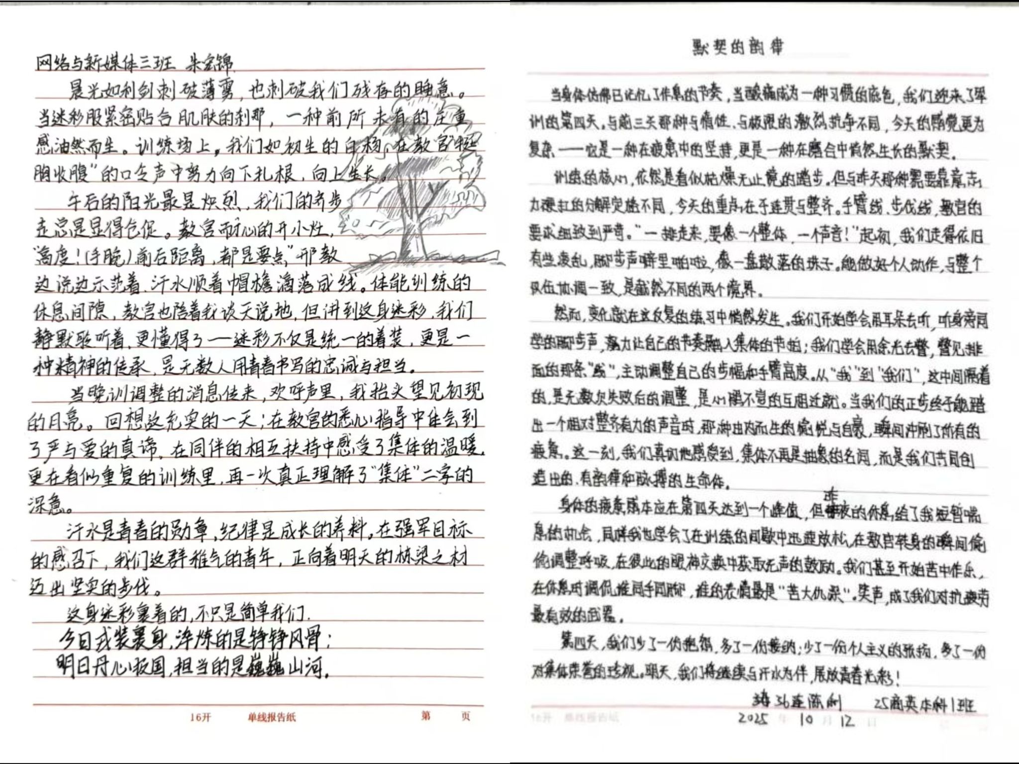 从文字到书画,从感悟到成长,第二期军训优秀心得展示凝聚了人文学子的赤诚与热爱。本期内容虽已结束,但军训里的收获与感动将伴随大家一路前行。记得持续关注,下期我们将带来更多精彩的军训故事与心得分享!