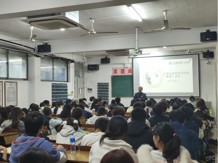 会上,陈老师围绕双创科研赛事的核心环节,为新生们进行了详细且实用的讲解。在论文写作方面,陈老师强调选题要具有创新性和研究价值,同时要注意论文结构的严谨性和逻辑性,避免出现内容混乱、论证不充分等问题。在资料收集环节,他介绍了多种有效的资料获取途径,如图书馆纸质资源、电子数据库、网络学术平台等,并提醒同学们要学会筛选和整理资料,确保资料的真实性和可靠性。在研究方法的讲解中,陈老师结合具体案例,分析了定量研究、定性研究、混合研究等不同研究方法的适用场景和操作要点,帮助同学们更好地理解和掌握研究技巧。